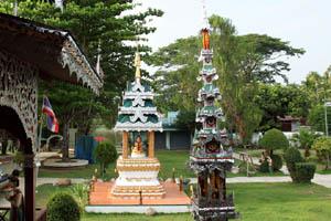 The temple has two beautiful chedis, a golden chedi and silver-colored