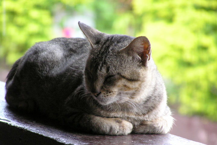 A cat taking a rest while hiding from the rain. :D |