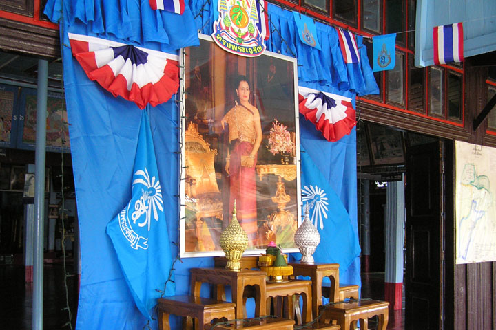 The queen's picture is displayed in August for Mother's Day in Thailand. |
