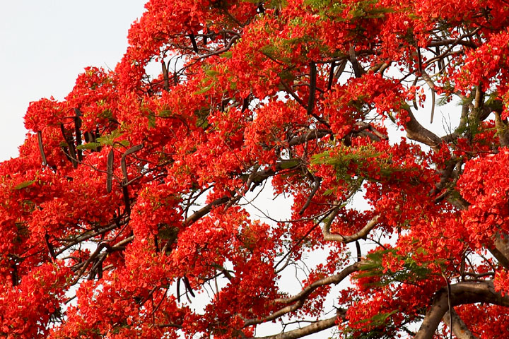 Blossoms around Chong Kham lake in front of the temples. They are very red. How wonderful ! |