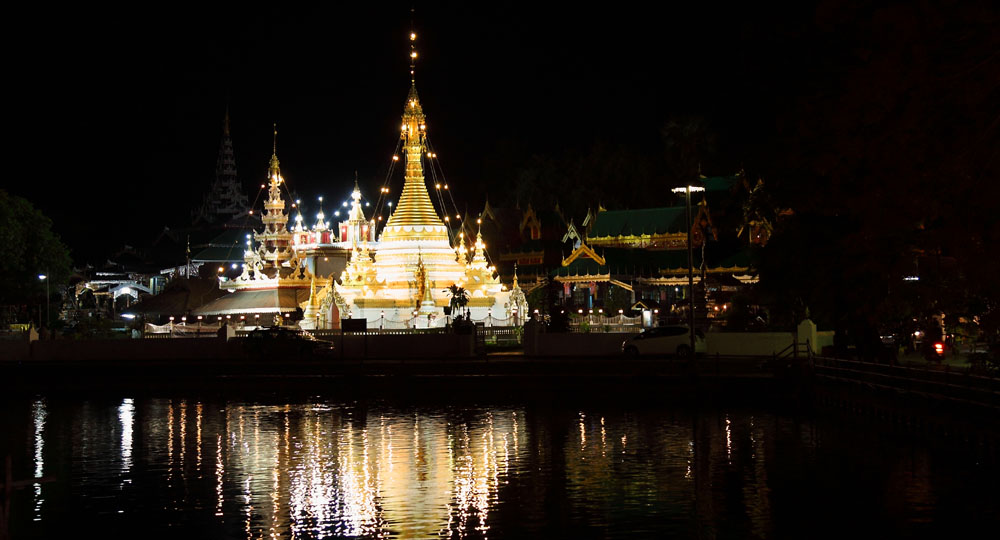 The golden chedi brightly lit up in the dark. Amazing. This is a must-to-see when you stay overnight in Mae Hong Son.