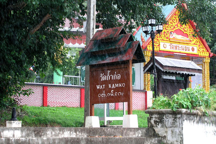 Kam Ko is a Tai word for Dok Bunnak in Thai or Ceylon ironwood flower. Wat Kam Ko is an old temple built in 1890 A.D. in a beautiful architectural style. One outstanding aspect is a roofed passage connecting the entrance gate with the Sala, the pavilion.