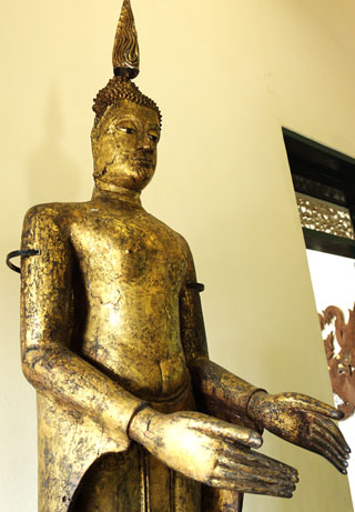 | In front of the huge images, you'll see smaller sized 4 Buddha images facing each direction.。 |