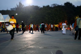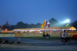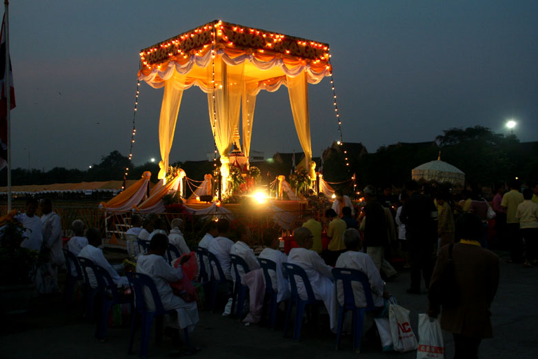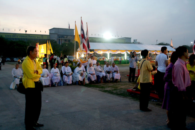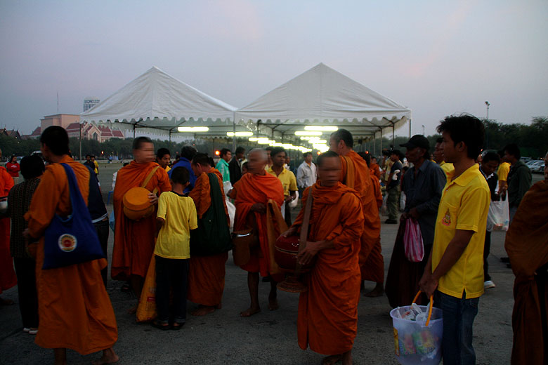 | Scenery of New Year's Day in Sanam Luang around the Grand Palace in Bangkok. (About "Grand Palace", see this page) This place is crowded as well with a lot of people (monks and ordinary people), and a new year's ceremony is taken place.