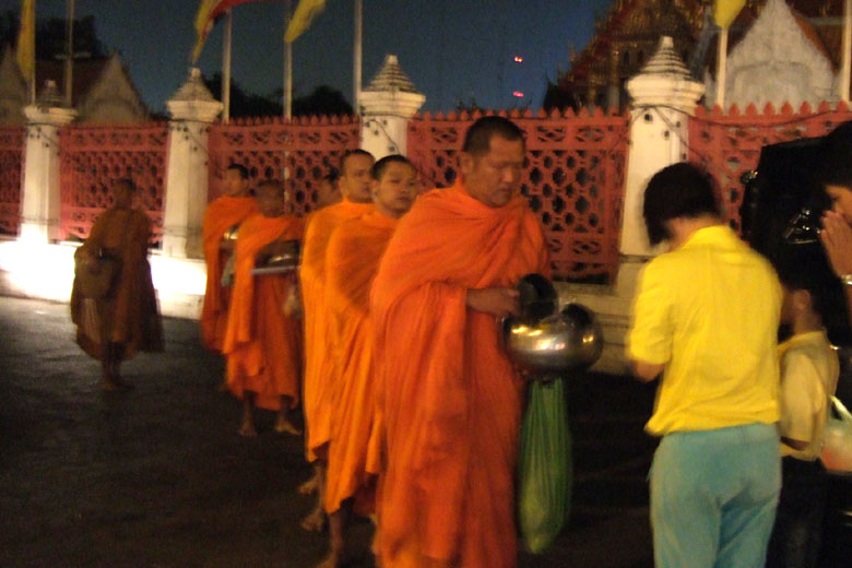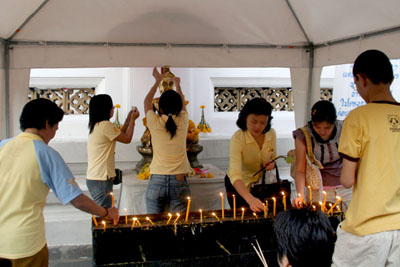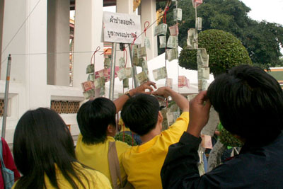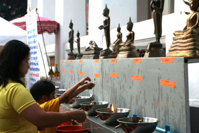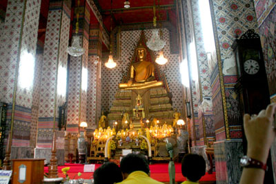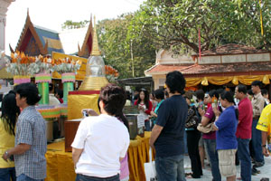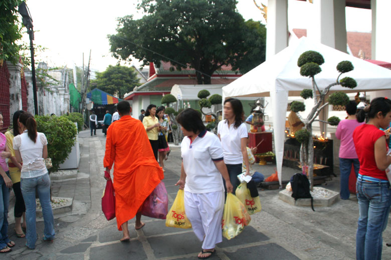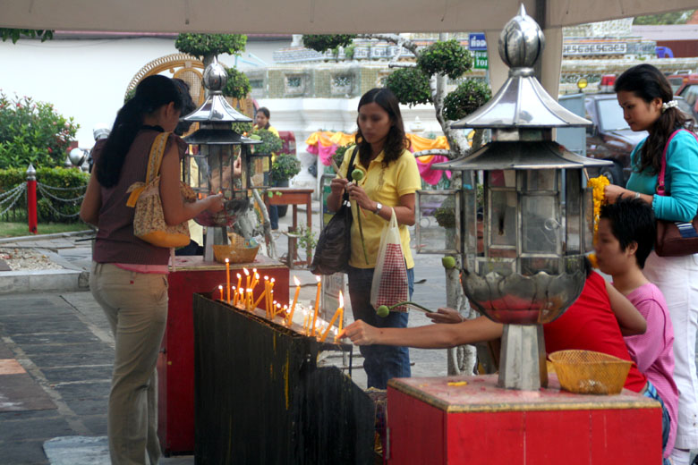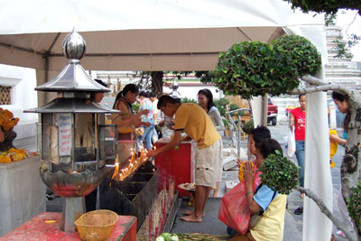 | Wat Arun 4 People having offerings for Tamboon come and go. |