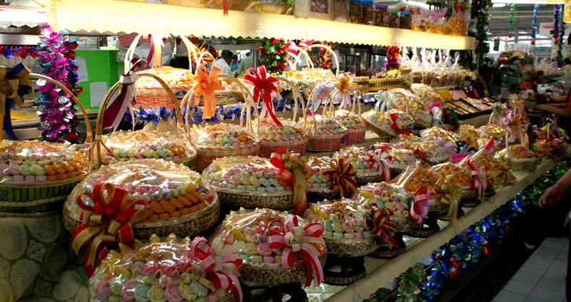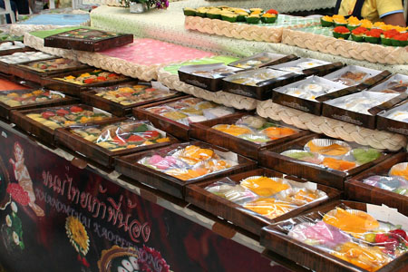 You maybe know the famous market in Bangkok, "Jatujak Market". This market shown in the pictures is near the Jatujak Market and called "Or Tor Kor Market". (Very close to my wife's home in Bangkok. :D ) People look busy preparing for New Year's Day as in Japan (the same in your country ?). (Picture above: Gift sets decorated very beautifully for New Years. They are Thai sweets.)