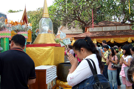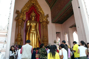 Prayer 2 People put gold leaves over the Buddha image. |