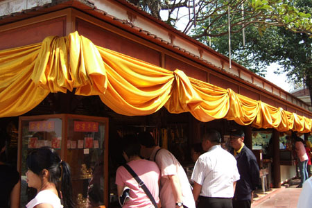 Shop In the site, a shop sells small sized Buddha images to wear. |