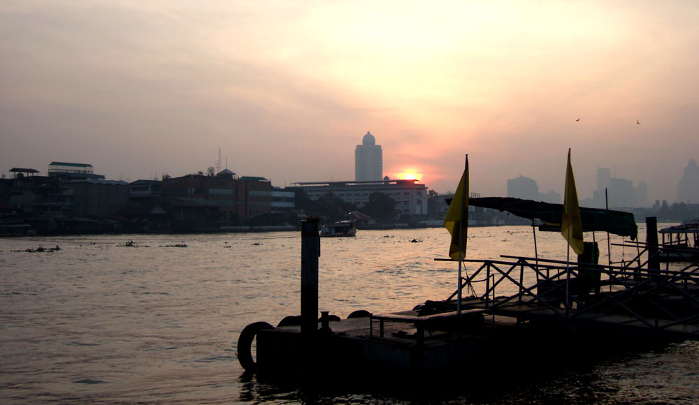Wat Arun 2 The scenery of sunrise from Chao Phraya River in front of Wat Arun. |