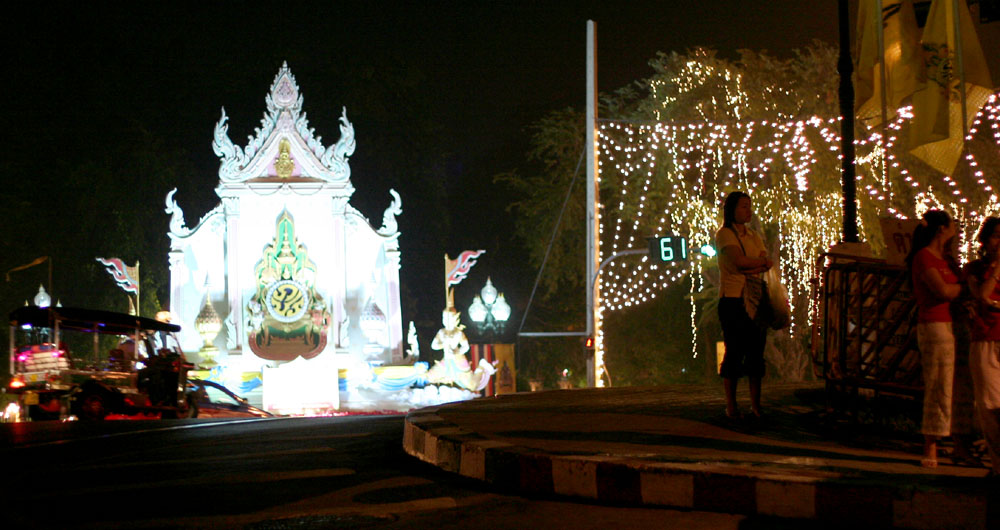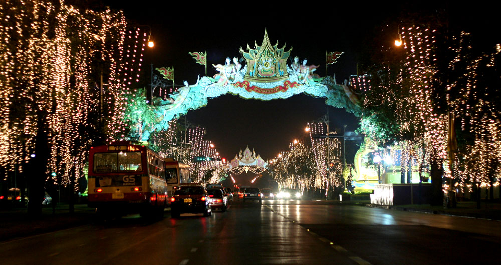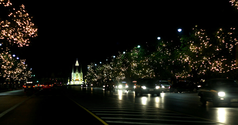 dawn in Bangkok.(The pictures here are on the first day of January, before dawn, around 5 o'clock.) Same as "Rama 9 The Sixtieth Anniversary", streets are decorated with a lot of lights. Fantastic, right ? :) (Like these, when big events such as a new year, when the birthday of King or Queen comes, streets and buildings are decorated with a lot of lights. This year, 2007, is a little special and more lights were lit up than usual because the last year, 2006, was the King's 60th anniversary.) |