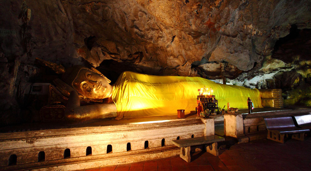 | Reclining Buddha The Reclining Buddha in the cave, ten meters wide. |