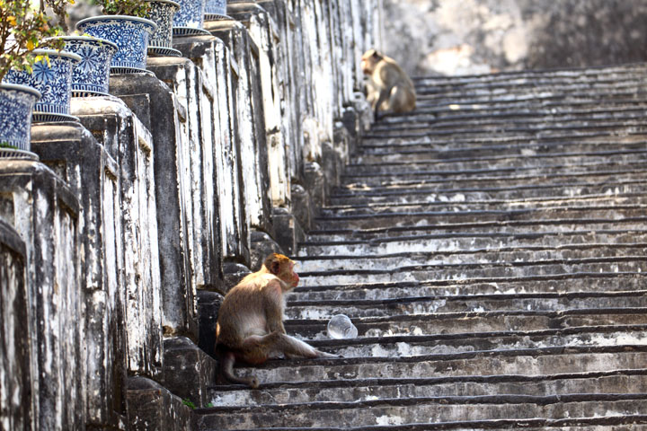 Be careful of the monkeys ! 5 Monkeys can be seen often on the stairs. |