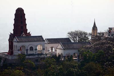 Wat Phra Kaew on the eastern peak. This is the temple built by Rama IV, in the same style of Wat Phra Kaew (Emerald Buddha) in the Grand Palace in Bangkok. |