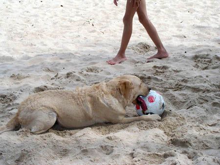 (Big dog keep the ball to himself and won't give it back. :D ) |