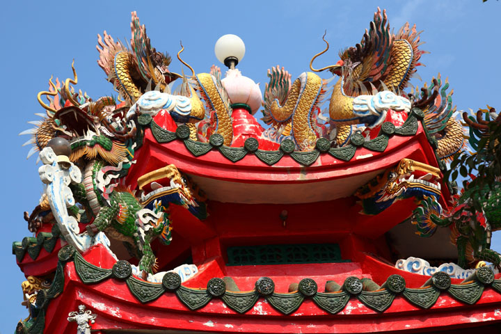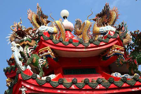 Dragons are decorated on the roof.