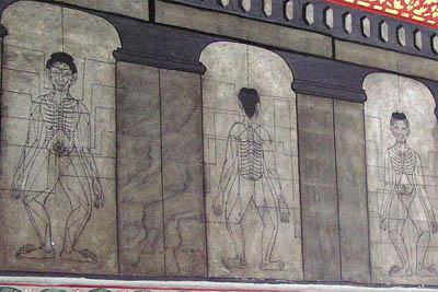 | The famous temple in Bangkok, Wat Pho. The huge Reclining Buddha in this temple is especially famous. The image of a reclining Buddha represents the dying moment of Buddha, the moment entering into nirvana. It says: