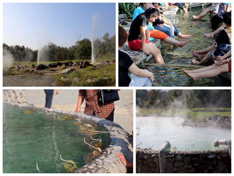 こちらはタイ北部、チェンマイにあるサンカンペーン温泉。足湯をしてる人たちや、子供は泳いでいたり、個室や大きなプールもあったりで、涼しい時期には地元の人で大賑わい。(温泉卵もしてます)
