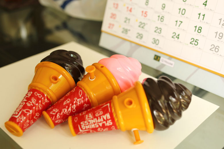 暑いとアイスクリームを食べたくなったりしますが、そんなタイでアイスクリームをセブンイレブンで買うと、ソフトクリーム型のおまけが付いてきます。これ、ソンクラーンが近いだけにソフトクリーム型の水鉄砲なんですね。(小さいから破壊力は小ですが)